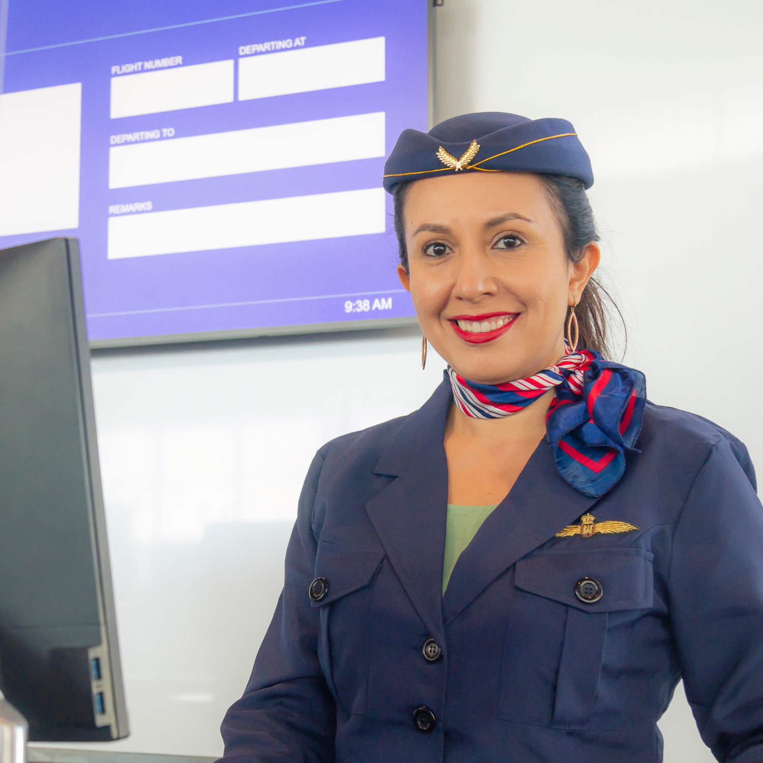 Tailored corporate attire (check-in/gate agents) combined with durable, functional Hi-Vis workwear (ramp crew).